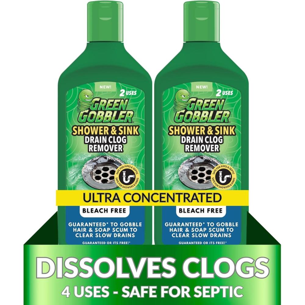 imageGreen Gobbler Ultra Concentrated Drain Clog Remover amp Cleaner  Powerful Hair Grease amp Soap Dissolver for Bathroom Kitchen Shower Sink amp Toilet  Safe for Pipes amp Septic Systems2 Pack